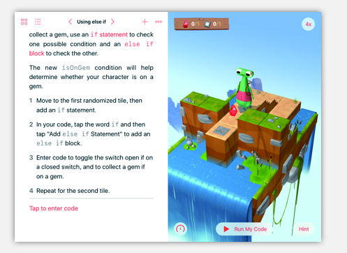 Swift Playgrounds是苹果公司2016年秋天推出的一款针对青少年的少儿编程软件,运行于iPad之上。苹果公司巧妙地将其自家的iOS开发语言Swift所有知识以游戏闯关的形式,让孩子们去学习。也就是说,一旦把iPad上的所有关卡都学完,学生可以自然而然地具备一定的iOS基础开发能力。它一开始就让学生接触到真正的代码,更具实战意义。目前,此程序在国内还没有普及。