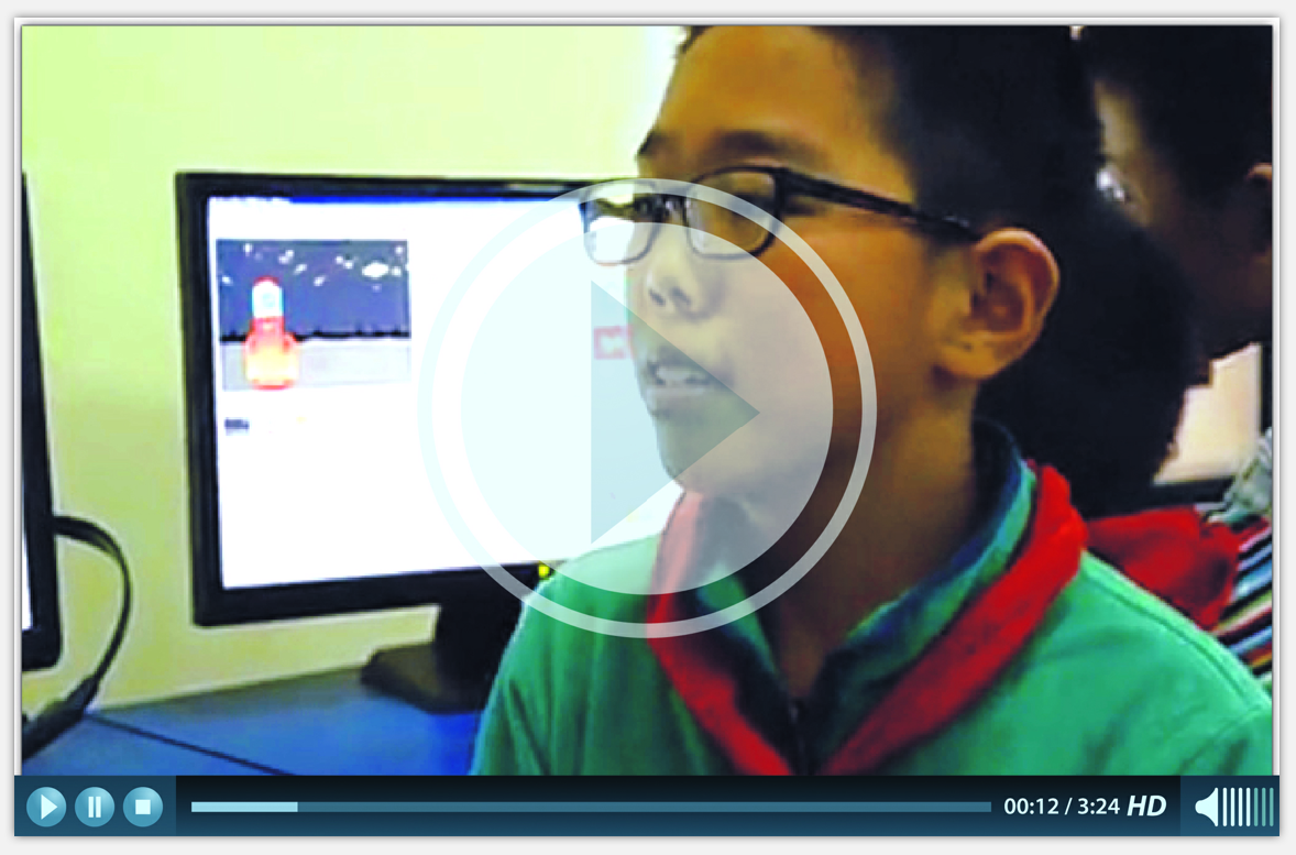 小学生利用Scratch编程控制模拟火箭发射,扫描二维码观看视频