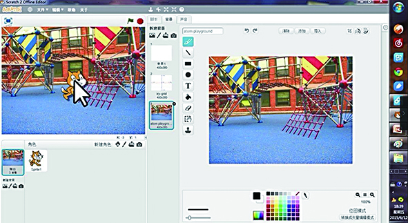 编程,就是让学生当一回小导演。学生需要把剧本里以及分解出来的小模块“翻译”成对应的程序。由于他们初步接触编程,因此,“翻译”需要教师一步步引导进行。