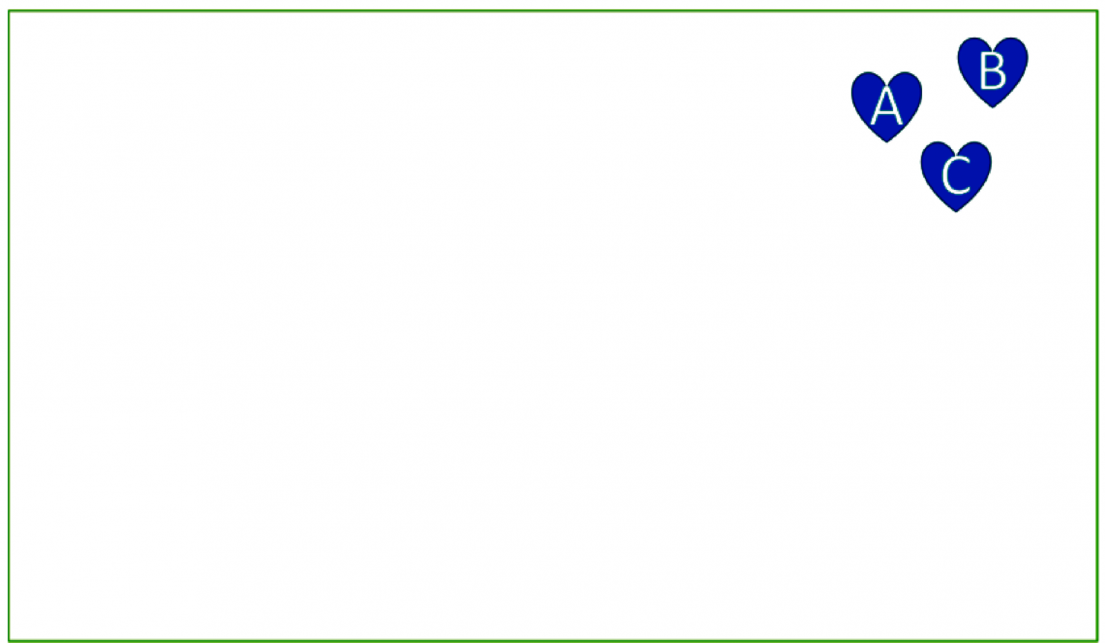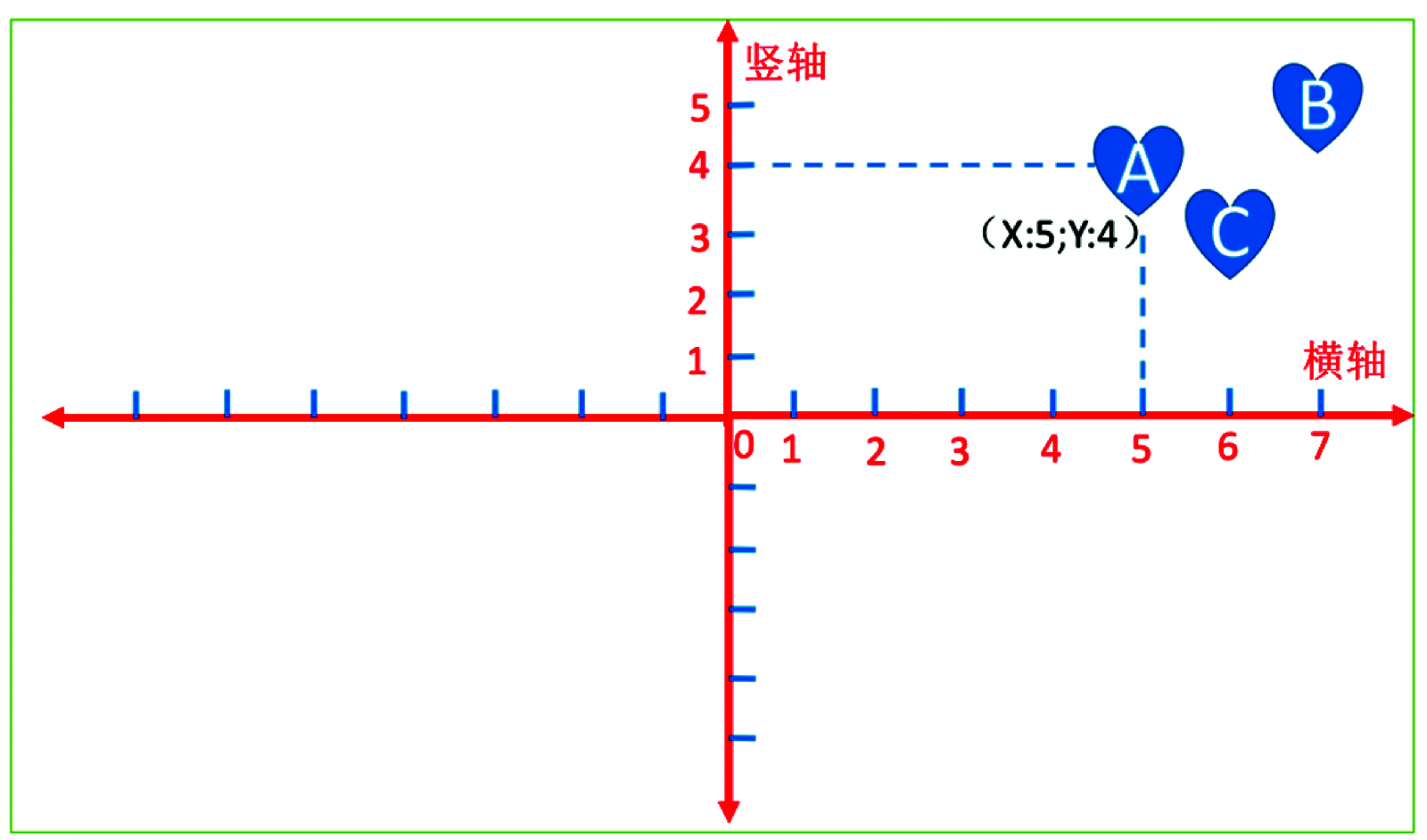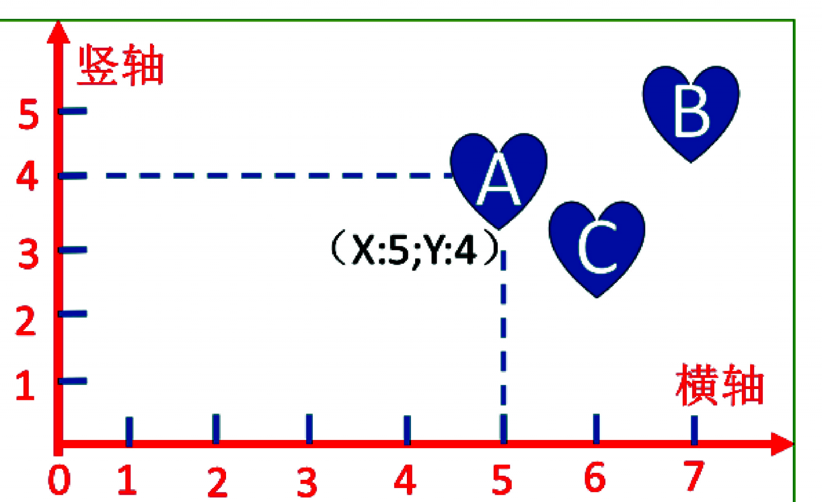 教师首先标出A心的坐标位置,然后让学生说出B心和C心的坐标。(如图10)