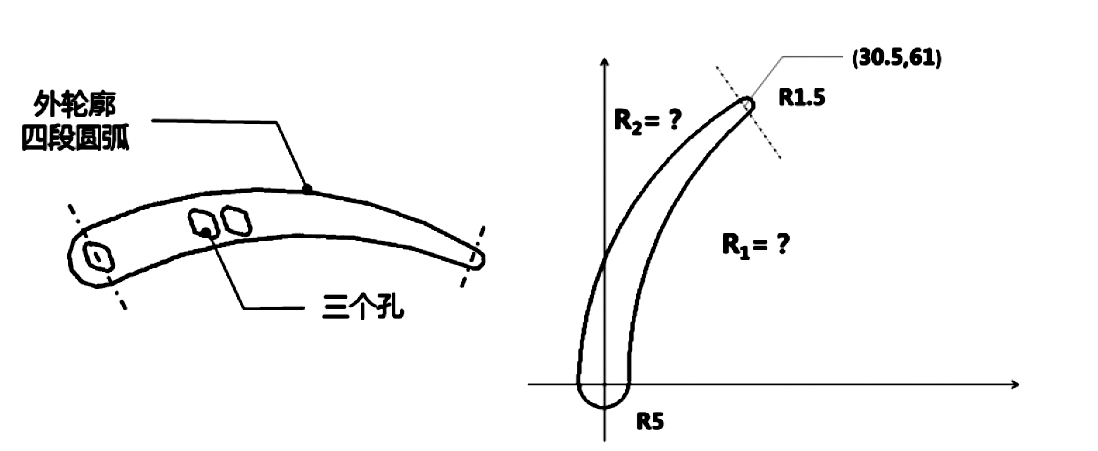 在发现问题后,学生拆下完整的腿部零件,将零件轮廓描在纸上并进行分析。教师首先指导学生测量一些简单尺寸,再引导学生进行小组讨论,采用三种方法测量最难确定的外轮廓圆弧半径。在测量的基础上,教师提出关于孔轴尺寸配合、加工精度、结构强度的问题。