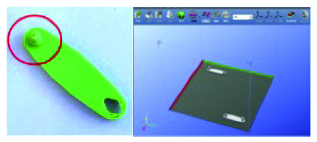 第一,零件变形问题。教师引导学生观察打印机的工作过程,逐步分析得出由于打印零件的横截面过小,下一层打印材料还没有充分冷却,导致新一层材料就堆积上去而造成变形。由此学生认识到自动打印布局是不可行的,并提出将两个零件置于打印平台两端,尽可能增加零件间距,延长堆积两层材料间的时间间隔,有效改善了这一问题。