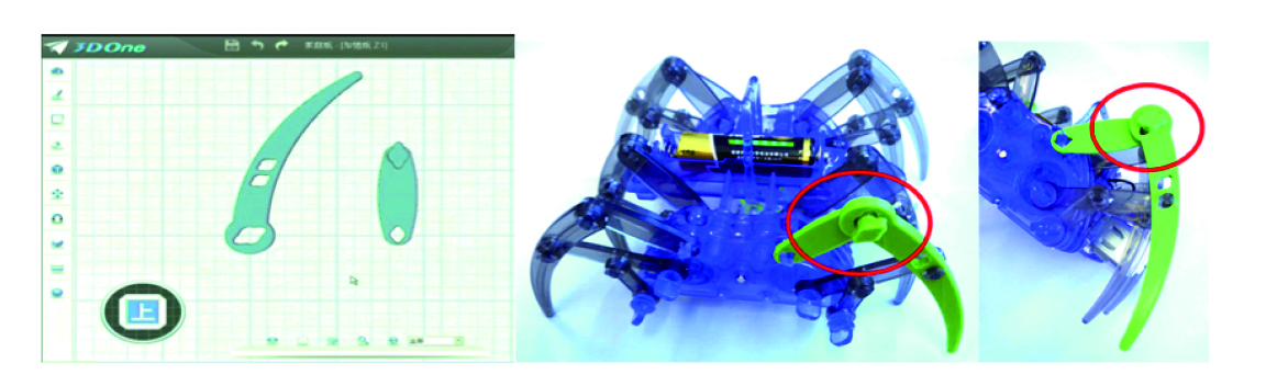 零件打印完成后,学生组装并测试蜘蛛爬行情况,对有问题的零件进行修复调整。