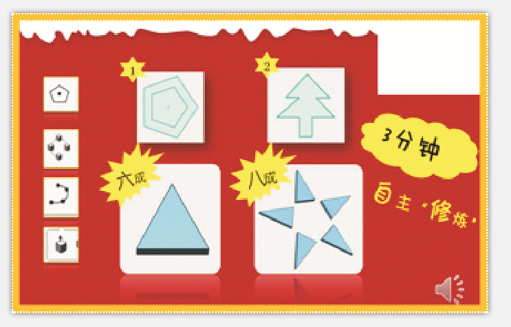 设计意图:上这一课时正值圣诞节来临,创设装饰圣诞树的情境,自然引出“圣诞DIY创意设计”的课程系列,先以雪花设计为例。