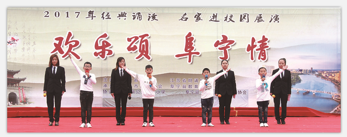 近日,由江苏省文化厅、江苏省朗诵协会主办,盐城市朗诵协会、阜宁县教育局承办的“欢乐颂·阜宁情”2017年经典诵读名家进校园展演活动,在阜宁县公兴中心小学大操场隆重举行。此次展演,有力地推动了该校的阅读工作,激发全体师生阅读经典、诵读经典的热情,从而在诵读中品悟,在品悟中传承,在传承中创新。