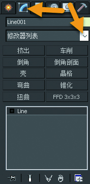 在线段被选中的状态下,找到修改器下拉列表,选择“车削”修改器(如图3)。