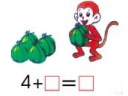 生2:由图片,我想到了小猴原来有4个大西瓜,由于很乖,别人又送给了它一个大西瓜,现在小猴一共有5个西瓜,即4+1=5。