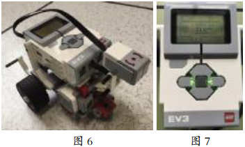 在乐高小车上加装陀螺仪传感器,传感器接在EV3控制器2号端口(如图6)。