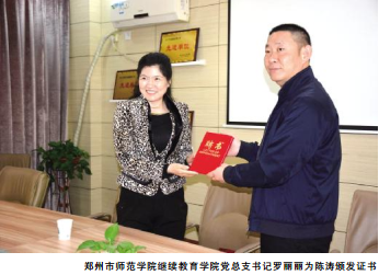 本报讯 近日,在郑州师范学院继续教育学院党总支书记罗丽丽的带领下,2018年郑州市第一期小学校长任职资格培训班跟岗交流团一行八人,到惠济区东风路小学进行为期四天的跟岗实践活动。