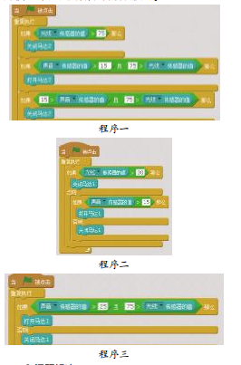 学生将Scratch传感器板与计算机相连,利用Scratch软件观察分析光线传感器、声音传感器的数值与周围环境的关系,判断驱动智能灯开关的大致参数。
