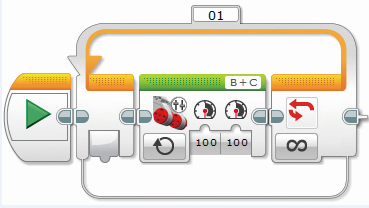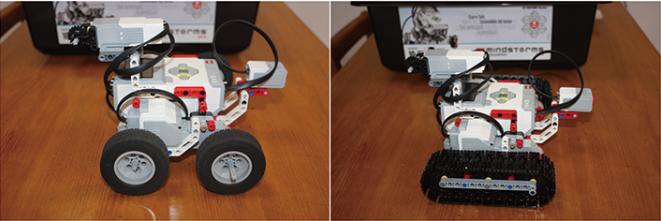 图2 部分学生改造方案2 说明:去掉左图中原始车辆的四个轮胎,改装成右图中的履带。 针对改造后的车辆结构,适当对原有程序进行修改来配合改造情况。(如图3、图4、图5)