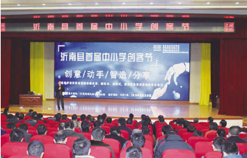 本报讯 日前,由临沂沂南县教体局主办,沂南县第五实验小学、联想集团山东分公司、临沂浩迪网络信息技术有限公司协办的沂南县中小学首届创客节在沂南五小盛大开幕。本次开幕仪式由沂南县教体局局长张勇主持,临沂市教育局电教馆馆长徐万东、临沂市教育局汲长睿主任、临沂市沂州实验学校徐勤波书记,淄博市创客专家于方军列席仪式。沂南县政府副县长祖丽梅、县教体局局长李道宽等领导莅临创客节活动现场并参观指导工作。 本次创客节的活动主题是“创意、动手、智造、分享”,推崇“创造、首创、开创、创立”。活动主要分为五项,分别是创客节开幕式、专家高峰论坛、学校交流参观创客节目展演、创客作品评审、创客技术培训。活动通过创客课堂展示、学校展示、企业展示等形式,展示中小学生创客作品和创意成果,提高社会各界对创客教育的认知度和关注度,在全社会营造关心支持创新教育发展的浓厚氛围。