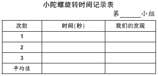 师:通过刚才的测试,你有什么发现? 生:在大转盘里的陀螺比在小转盘里的转的时间更长。