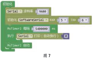 2.完成控制音乐播放器模块与扬声器传感器的编程,定时提醒学生用眼过度需要休息,根据音乐提示做眼保健操。(如图6)