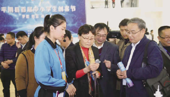 开幕式后,与会领导和嘉宾参观了学生作品,并与中小学生创客亲切交流,纷纷为同学们的奇思妙想、聪明智慧点赞。本届创客节以“梦想、创意、动手、分享”为主题。设计了创客教育展示区、科普体验区、创客大赛区三个板块,涵盖了电脑作品评选、创意智造、机器人航模、无人机比赛等活动,26所学校17个代表队参赛,展出作品300余件。