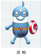 5.对盾牌重新进行组合。复制出一个新的盾牌,缩小后调整到腰带的位置。原盾牌调整位置到手里面,调整合适的角度。(如图10)