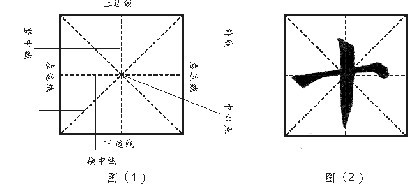 笔画定位即利用“田”字格确定笔画位置。在注重对字形结构分析的同时,加强定位的读帖,能明显提高学生临摹的效果。首先给“田”字格里的线起好名字,主要有横中线、竖中线、中心点、边线等。如图(1)。