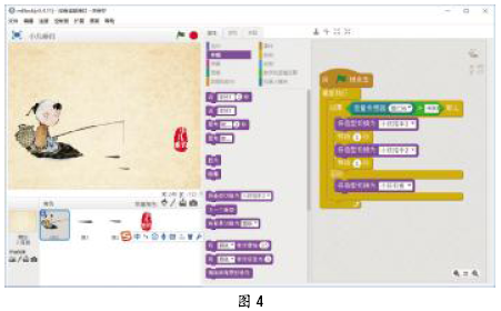 身处知识飞速发展的时代,我们必须让学生准备好应对那些未知的挑战,让他们无论将来遇到什么样的问题,都具备解决问题的能力,有能力找到系统地解决问题的方法。STEM教育是承载上述目标的绝佳载体,STEM教育理念旨在打破学科的壁垒,综合运用科学、技术、工程、数学等领域的知识解决实际问题。对学生个人来讲,STEM教育可以提高逻辑思维、批判性思维的能力;在协同完成项目的过程中锻炼沟通能力,提高团队合作的能力;培养现代社会急需的创造性解决实际问题的能力;提高解决未知问题的能力。对国家而言,科技的发展决定了国家和民族的命运,STEM教育为国家培养相关领域的储备人才,“承载着打造本国在全球范围内核心竞争力的重大任务”(《中国STEM教育白皮书》)。 落实到日常教学,学生要实现从做题目到做项目的转变,教师要实现从教技术到设计和引领STEM项目的转变。那么如何设计出一个计算机方向的STEM项目课程呢? 一、STEM项目的设计 首先,STEM项目设计的来源必须是真实的问题,是来自工程方面的挑战。只有真实的问题,才能够激起学生与生俱来的好奇心,并能“引诱”学生去调查寻找解决问题的方式。我们可以让学生去解决生活社区中的社会、经济和环境问题,或对生活中的某个产品进行改进,让其更加安全或者更加具有成本效益。为学生提供融入真实情境的体验,帮助学生对科学、技术、工程和数学各领域概念形成深刻的理解。 其次,问题要与学生相关。在项目开始前,告诉学生该项目使用到的科学和数学方面的知识,让学生了解项目有哪些用途,可以在生活中的哪些方面得到应用。项目与学生的相关性越高,学生投入的热情程度越高。 另外,任务的设计,要为学生提供多种创造性解决方式的可能。STEM研究任务,不是科学实验,也不是解数学题,没有所谓的正确答案。多种不同的解决策略,能够锻炼学生的创造性思维。 最后,STEM项目的设计一定要有工程的参与,用工程思想提升项目质量。STEM中的E表示工程,没有工程参与的STEM活动,不是真正的STEM教学,因而工程设计是整个STEM活动的核心。工程设计是解决问题过程中遵循的系统方法,它建立了将复杂问题分解的框架结构,有助于帮助学生梳理解决问题的思路和逻辑。不同的文献资料,对工程设计过程的描述略有不同,不过大体步骤分为:明确任务、构思规划、知识储备、建模制作、测试优化,教师需要让学生熟悉这个过程,这是学生今后解决工程问题的框架结构。 在教学“声音传感器的使用”时,多数教师直接教授声音传感器的知识,接着学生模仿教师的作品,用声音控制角色的大小、颜色、位置、造型等。教学过程暴露了几个问题:1.学生完全没有自己的想法,教师从头到尾没有给学生思考的时间;2.作品缺少应用价值,这个作品能够用在什么地方呢?它有什么用呢?学生不知道,教师也不关注。 基于上面的认识,我对“声音传感器的使用”课程进行了重新思考:必须让学生利用声音传感器创作出一个产品,这个产品要有社会价值,能够调动学生的积极性;要让学生经历完整的工程设计过程。最终,我确定了如下教学目标:学生学会使用声音传感器;学生会创造性地利用声音传感器设计出互动艺术作品;提升学生的艺术涵养,培养学生动手解决生活实际问题的能力。 由此,我重新设计了STEM活动的项目:设计一款基于声音控制的互动国画作品。这个作品是一个真实的项目,学生也知道在完成这个项目的过程中将用到很多科学和信息技术方面的知识。同时,该作品能辅助低年级学生学习古诗,可以用来进行传统文化的展示,这些都是与学生相关的。最后,学生可以设计出不同的动画效果,作品具有多样性。另外,这个作品还融合了传统文化,实现了传统文化与现代技术的完美结合。 二、STEM项目活动案例 1.水墨动画欣赏与创意构思 今天我们先来聊一聊国画,最近老师看到一个非常有意思的国画作品,设计者创造性地将传统的国画制作成动画,我们一起来欣赏。 你看,这幅古画好像“复活”了,鸟儿可以从画中飞出来。(如图1)