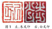 师:印章是中国古汉字和中国古印刷术的结合,它的功能是作为古代的一种签名形式或者说是凭证。印章大多以玉、石、木为载体,加以刻印汉字为主,辅以形象线条。我们现在看到的最早的印章大多是战国古玺。印文笔画细如毫发,都出于铸造。印章作为信物的特性,古今基本未变,但唐宋以后不断出现的闲章,使印章文化逐步向艺术欣赏转化,印章逐渐成为一种艺术品。 三、师生讨论,探究印章文字安排 教师提问:刚才我们一起欣赏了不同样式的印章,那印章有哪些文字安排,你们知道吗? 教师着重讲解朱文印和白文印,如图1。
