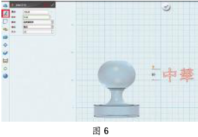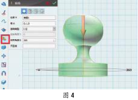 3.选择特征造型—旋转命令,沿直边旋转360度,点击“√”确定,得到印章整体,如图4。