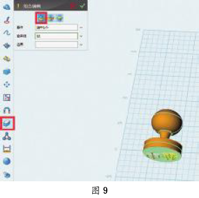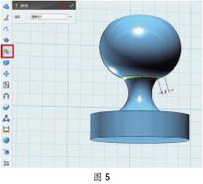 4.旋转后,选择特征造型—圆角命令,角度为3,点击“√”确定,做好印章中间把柄倒角处理,如图5。