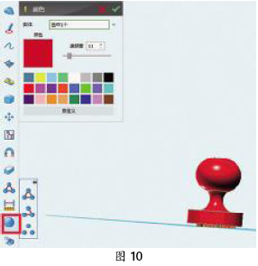 10.考虑到3D打印应尽量减少支撑耗材,选择基本编辑—移动命令,将印章底部朝下。 11.选择颜色,进行相应色调的渲染,如图10。