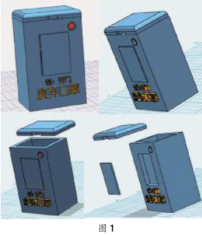 通过整体规划设计,定制实体尺寸,用3D one软件建模设计专用箱实体。箱体包括:能开关闭合的门,能盛放废弃物的空间,有预留清理工作的顶盖,框架模型如图1。