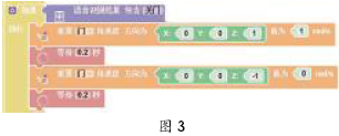 三、用3D One AI 编程实现人工智能语音控制 中望公司2020年5月最新研发了3D One AI,是在原有的3D One软件基础上整合了AI部分,融三维创新设计、人工智能、开源硬件、编程等多种技术于一体,能辅助学校开展人工智能教育和STEM教育。 专用箱体建模完毕后,进入3D One AI进行全局属性、物理属性、关节的设置,接着进入AI程序设计环节。 1.程序设计之模块选择 程序设计第一步是模块的选择,如果“语音识别结果”为“开门”,那么程序执行时,“门”要有确定的角速度方向及旋转速度,这时就需要用到旋转速度程序模块和角速度方向程序模块。学生在调试程序时,若发现开门方向错误或者门的旋转速度不理想,可以修改角速度方向及旋转速度。 2.程序设计之控制器编程 选择模块的同时,进行控制器模块编程设计。例如:如果“语音识别结果”为“开门”,那么程序执行自动开门的语句。利用循环语句实现“门”在语音提示发出后,自动打开的动作,并设置适当的等待时间,让“开门”的动作实现视觉上的停留,如图2。