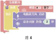 4.启动仿真 编程完毕,进入仿真环境调试运行程序,启动“电脑麦克风”和“语音识别”程序,单击“启动仿真”,如图5,程序开始运行。