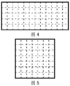 四、让学生皆能“重实践” 数学教学中,不仅要借助学生已有的生活经验,理解和掌握数学知识,还要将学到的知识与现实生活相结合,运用于实际。 案例4:把一个长12厘米、宽5厘米的长方形分成长3厘米、宽2厘米的小长方形,最多能分成多少个?在图4中画一画。如果把边长是7厘米的正方形也分成这样的小长方形,最多能分成多少个?在图5中画一画。(苏教版教育部审定2013义务教育教科书三年级下册数学书第75页思考题)