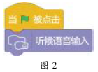 生1:首先我们需要单击绿旗,然后开启语音输入的功能(如图2)。