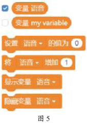 生3:为了检验AI语音的识别结果,我们可以将语音变量设置成为显示状态(如图5),在舞台上可以随时观看语音识别情况。