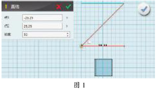 学生讨论、思考、回答。 师:仔细分析图片中的室内杂物收纳箱,它主要由支架、箱体和箱盖等三部分组成。支架可以固定箱体,箱体起收纳杂物和支撑的作用,箱盖可以封闭箱口并作凳子面,还需要活动轴连接箱盖和支架,便于打开和关闭箱盖。 (二)制作模型 任务1 制作支架 师:从外形上看,支架模型是一个大写字母Z,请同学们以小组为单位讨论这个支架制作过程,其中主要使用了哪些命令工具? 小组讨论制作过程并操作,教师巡视指导。 教师讲解操作步骤: (1)在平面网格中心添加一个六面体作为辅助体,切换到前视图,使用“草图绘制”—“直线”,绘制一个直线长为50、高为50的Z形(如图1)。