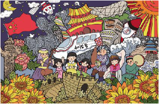 和谐中国 南京市江宁区麒麟中心小学 王震 我国进入了科技和经济快速发展的新时代,人们逐步迈进小康生活,生活越来越好。我的设计理念是把近年来国内的一些科技发展成果和人们和谐美好生活的场景汇聚到一起,体现出小康梦、中国梦,并运用数位板以及SAI软件进行创作,分图层进行绘画,有利于修改。