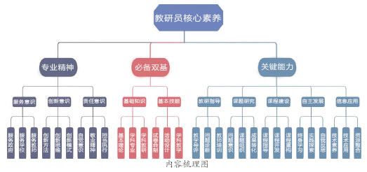 2018年教育部等五部门印发的《教师教育振兴行动计划(2018—2022年)》及中共中央、国务院颁布的《关于全面深化新时代教师队伍建设改革的意见》,两个文件描绘了新时代教师队伍建设的宏伟蓝图,吹响了推进教师队伍建设改革的集结号。2019年,中共中央、国务院《关于深化教育教学改革全面提高义务教育质量的意见》中提出发挥教研的支撑作用。教师进修学校的主要任务就是要服务于政府决策,服务于学校,服务于教师,服务于学生,承载着研究、指导、服务、培训等职能作用。如何更好地发挥教研的支撑作用,提升教研品质,提高教学质量,这是教师进修学校要思考的问题。接下来,笔者以长春经济技术开发区教师进修学校为例进行浅析。 一、直面问题,寻求解决问题的最佳策略 教师要总结回顾以往工作,认真总结梳理工作中的成绩与不足,发扬成绩的同时,更要总结工作中存在的一些亟待研究和解决的问题,从而寻求解决的最佳策略。截至目前,笔者发现工作中还存在以下不足。 一是教研活动主体性不强,教研活动形式单一。教研活动中骨干教师唱主角,但现在却存在就课论课现象,教研主题不突出。 二是教师科研意识不强。教师为了教研而教研,对科研的认识不足,认为科研是科研人员的事情,中小学教师没有能力做科研,导致教研和科研分裂的现象。 三是培训没有形成课程体系。培训内容虽有针对性,解决了教师的困惑,但是没有从课程的角度思考,没有形成课程体系。 四是经验型评价占主导地位。教师对理论依据和实证数据的有效运用有待于进一步的加强,基于数据下的客观评价体系有待于进一步完善,仍需要建立科学的评价体系。 教师进修学校是师资培训的“工作母机”,与区域内教师的专业发展和教研员专业素养的提升息息相关。针对存在的问题,笔者学校寻求解决问题的策略,最后立足于教研方式的转型,在教研转型升级上进行了深入探索。 二、潜心探索,促进区域教育适应新发展 (一)组织方式转型:自我成长的管向自主发展的放转变 一是组织变革,建立团队,让教研员做“CEO”。学校借助海尔集团组织管理变革的先进经验,突出“倒三角”组织结构特点,实现“两个零距离”。充分发挥教研员的主体性,建立教研团队,按需设立研究主题,建立问题主题化、主题课题化的研究思路,组建研究团队,开展草根课题研究,让教研员做自己的“CEO”。教师进修学校领导和北京的教育专家在底层助力教研员的团队建设。 二是价值引领,确立共同愿景,让教研员有情怀。教研员为了实现共同的愿景,为打造实力进修、特色进修而努力。他们行动自觉、以身示范、精诚合作,真正做到了“成全他人,成就自己”的校训。他们有热爱教育的情怀,淡泊名利的坚守,从内心体验到了职业的幸福感。 三是攻坚计划,立足本职,让教研员有真本事。教师进修学校在北京教育专家的助力下,制订了《教研员三年攻坚计划》(下称《攻坚计划》),包括3个方面10个要素30个基本点(具体内容见内容梳理图),这个《攻坚计划》学校按照三年的时间规划,细化完成年度目标。其中,每周四为《攻坚计划》学习内容的自修日,每周五进行PCBS学习会,在会议上要实现三个层次的价值观念:学科共通价值、学科独特价值、学科具体价值。