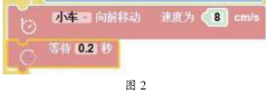 3.程序设计——智能测距 师:小车经智能识别并在规定的线路上正常运行,那如何实现智能停车?距离传感器来帮忙。我们可以利用条件判断语句来执行,如果智能测量距离大于20,则小车继续往前行驶;如果智能测量距离小于或等于20,则小车自动停车,如图4。