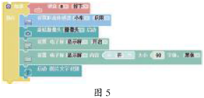 4.程序设计——人机交互 师:如果摄像头、传感器、显示器一直处于启动状态等待运行,既浪费电又损耗设备,如何解决耗材耗电的问题? 解决方案:在程序中加入触发控制模块实现人机交互,比如“当按下键盘a”开始执行启动所有的程序,如图5。