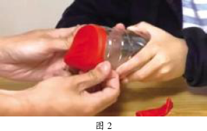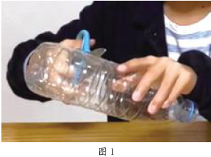 师:同学们挑战5个以上的纸杯就失败了,说明我们的空气炮威力太小了。要制作威力更大的空气炮,首先得知道它是如何工作的。那么,空气炮的工作原理是什么? 教师一边演示,一边引导学生了解空气炮的工作原理:先拉动气球,让空气占据更多瓶内空间;松开气球,是利用气球的弹力压缩瓶内空气,让空气急速从瓶口流出。