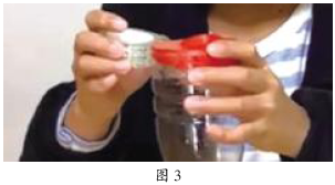 第三步,用胶带沿着套上的气球粘上一圈,将气球固定在瓶身上,如图3。
