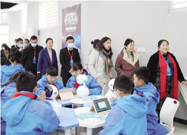 本报讯 “人工智能进入课堂,会给教师的教学和学生的学习带来怎样的创新性引领和改变?”近日,在鹤壁市人工智能课程培训暨现场观摩活动开幕式上,这个话题引起了参会者的热议和思考。 此次人工智能课程培训暨现场观摩活动,由中央电化教育馆指导、鹤壁市教育体育局主办、鹤壁市城乡一体化示范区教体文旅局和鹤壁市辅仁中小学承办。中央电化教育馆基础教育资源部主任黄旭光,河南省电化教育馆副馆长窦颖梅,鹤壁市教育体育局党组成员、副局长牛万斌,鹤壁市电化教育馆馆长王志伟,鹤壁市城乡一体化示范区人大工委副主任焦志平,鹤壁市城乡一体化示范区教体文旅局局长张颖出席开幕式。鹤壁市各县(区)教育局、电化教育馆负责人及各级各类学校人工智能骨干教师等150余人参加了活动。此次活动进行了线上直播,据统计参与直播观看的人数超过10000人。