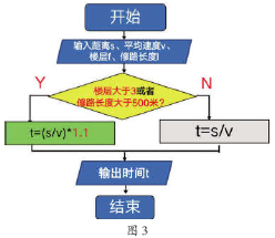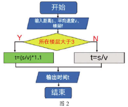 化归为算法问题:先输入距离s、平均速度v和楼层数f,再判断用户楼层是否大于3层。如果大于3层,那么时间系数乘以1.1;否则,按照原始计算时间的方式。算法流程图如图2。