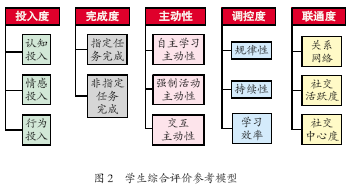 信息技术支持下产生的新的评价体系,其最终目的都是通过对人机交互、社会性交互、思维模式、过往绩效、学习媒体或类型的倾向、情绪表征等数据的收集,实现对学生的个性化评价。例如,由逾百所美国顶尖私立高中组成的联盟Mastery Tran Consortium(MTC)正式推出了一个全新的学生评价体系——A New Model。他们对学生的评价不打分、不评级,而是通过持续追踪、记录、评估学生的八大能力,以此作为评价一个学生是否能进名校、是否优秀的标准。(如图1)再如,由互联网教育智能技术及应用国家工程实验室开发的“树镜”评价系统。该系统借助个体发展的综合素质评价模型、身心健康模型、学业水平评估模型,实现对基础教育学生在线学习发展的全方位、立体化的有效评估。又如笔者所在团队研发的学生综合评价参考模型, 称为S -SERI (Student -Systematically Evaluation Reference Indicator)模型。该模型由维度和指标构成,其中维度满足对学生的某方面评价需求,具有一定概括度和抽象层次,可能包含多个指标;指标则是对维度的具体分解。(如图2)