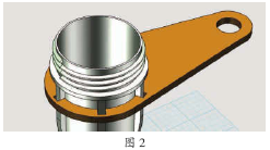 学生观看、思考并回答。 教师总结:扳手主要由凹槽齿圈(近似于齿轮形状)、手柄和挂圈等3部分组成。其中,带有凹槽的齿圈是整个水管过滤器扳手的关键部分,在使用过程中齿圈的凹槽和水管过滤器突起的齿啮合,使其相互产生作用力,如图2。