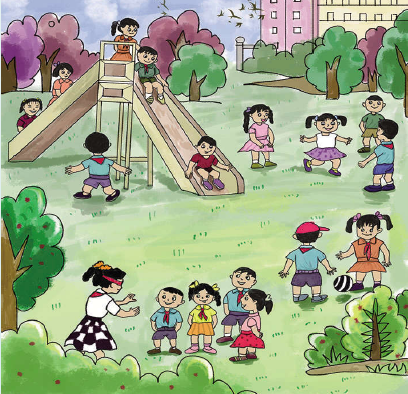 课间活动 课间的校园是最热闹的。铃声响起,同学们像小鸟一样飞出教室,有的踢球,有的滑滑梯,有的捉迷藏,别提多高兴了!我先通过手绘板,把小朋友们在校园里玩耍的场景描绘出来,然后运用Windows绘图工具在电脑上填色。