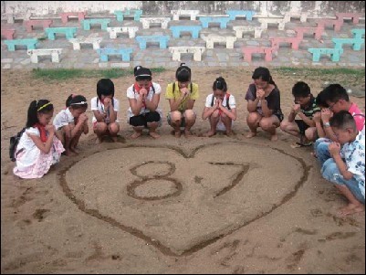 ▲2010年8月15日,是全国哀悼日,各地都举行活动哀悼舟曲遇难同胞。图为赣榆县海头小学师生们在海州湾畔祈福舟曲。