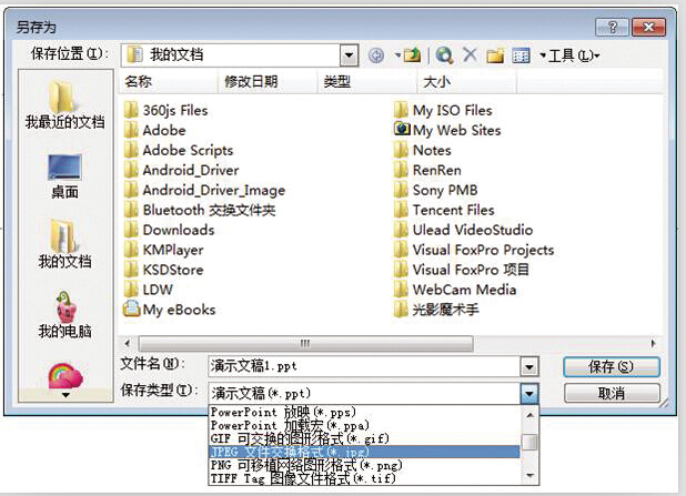打开需要保存为图片的幻灯片,点击“文件”→“另存为”,将保存的文件类型选择为“JPEG文件交换格式”,单击“保存”按钮,此时系统会询问用户“想导出演示文稿中的所有幻灯片还是只导出当前的幻灯片?”根据需要单击其中的相应按钮即可,如下图。