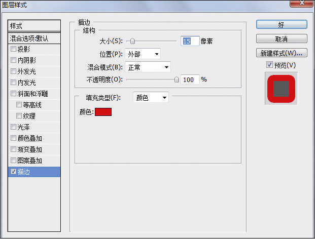 3.双击文字图层,打开图层样式,选择描边,设置如下。