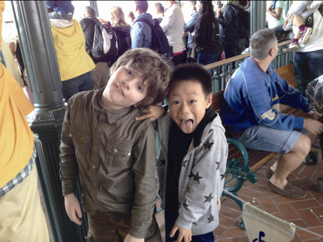 ▲夏天,我们一家来到巴黎的迪士尼乐园。在环游火车的站台候车时,我认识了一位乌克兰小朋友。年龄相仿,兴趣相投,虽然语言不通,但是通过动作、表情的表达,我们完全可以理解对方的意思。友谊不分种族,不分国界!