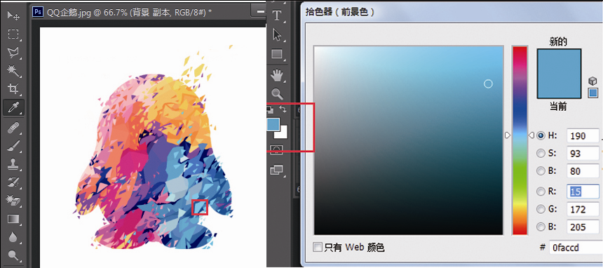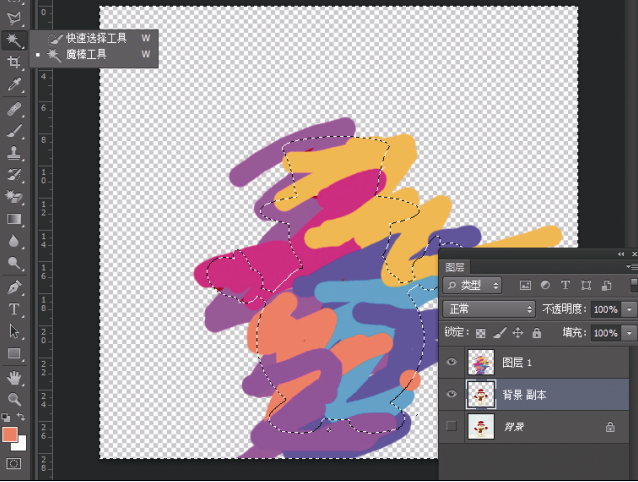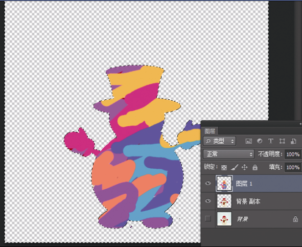 7 点击“图层1”,按住Delete键,即可将多余的涂色去掉。彩色雪人打造完成,如下图。