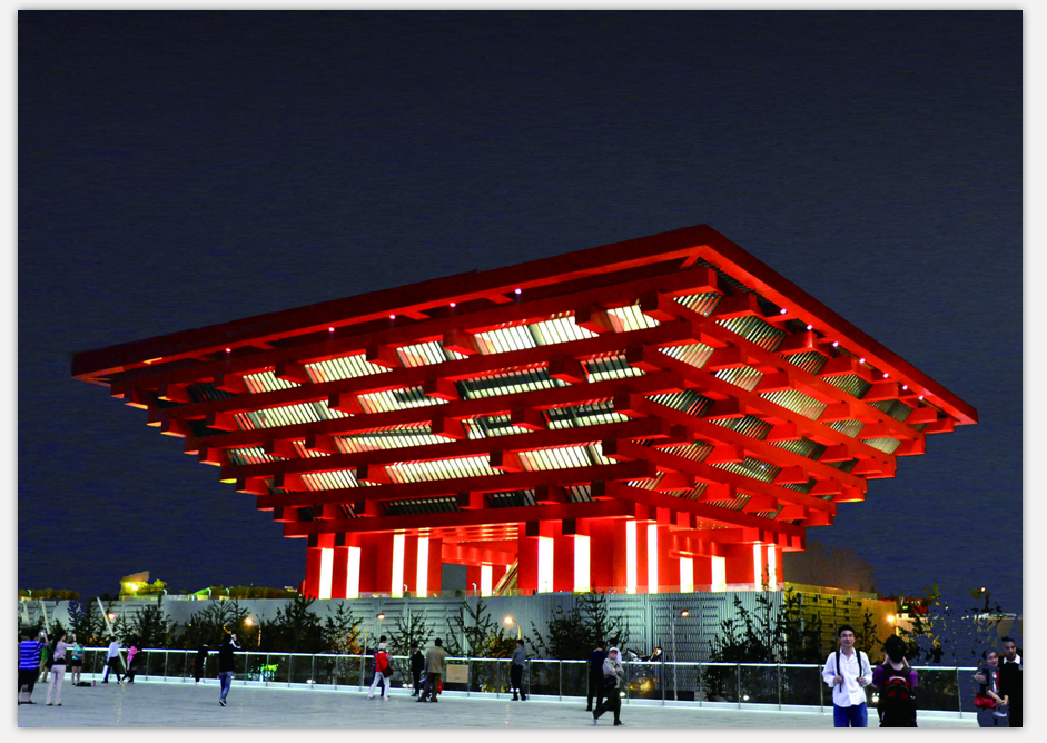 ○上海世博会中国馆展示了绵延不绝的中华智慧。从第一展区“东方足迹”,到第二展区“寻觅之旅”,再到第三展区“低碳行动”,一路激荡着游客的思绪。